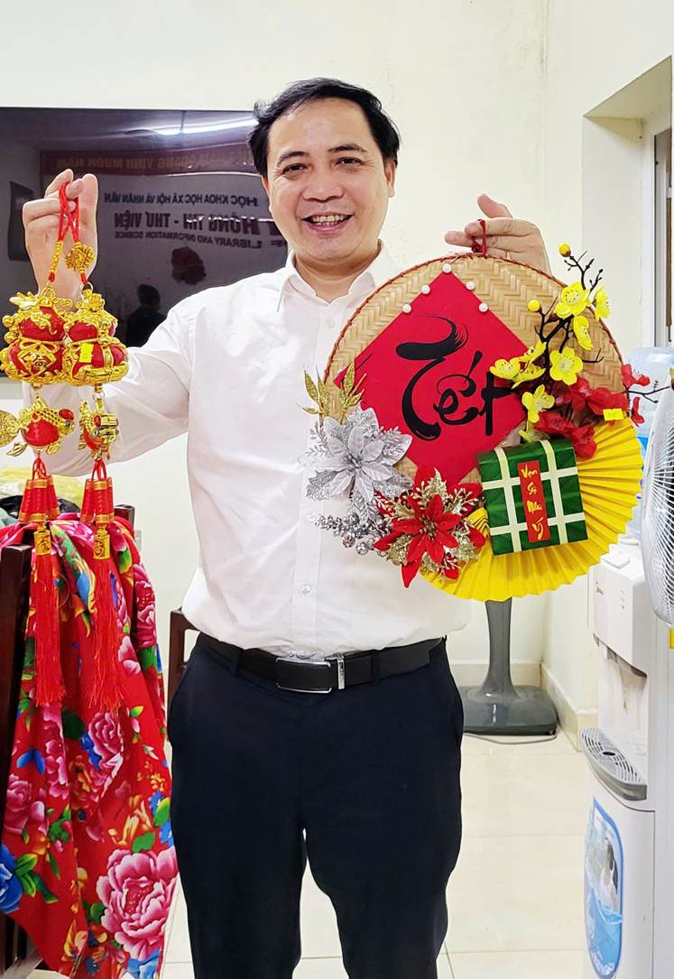 Điểm đặc biệt của gian hàng Khoa Thông tin – Thư viện nằm ở các sản phẩm thủ công truyền thống – nơi thầy cô không chỉ “bán” một vật phẩm, mà đang kể một câu chuyện về Tết Việt.