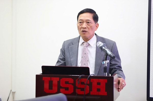 PGS-TS Đỗ Văn Hùng - Trưởng khoa Thông tin - Thư viện (USSH) - chỉ ra chất lượng là yếu tố sống còn của OER - Ảnh: Đỗ Minh Hà Tuấn