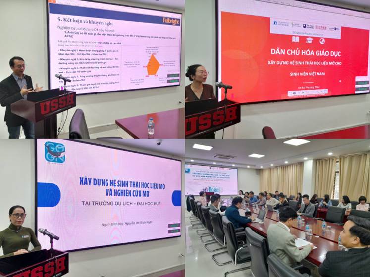 Đặc biệt, hội thảo còn hướng đến tầm nhìn xa hơn, khi bàn về vai trò của GO-GN Asia-Pacific Hub và cộng đồng thực hành OER, nhiều ý kiến nhấn mạnh tầm quan trọng của mạng lưới học giả quốc tế trong việc nâng chuẩn nghiên cứu về OER ở Việt Nam. Vấn đề cốt lõi là thúc đẩy các nghiên cứu định lượng, phân tích tác động, đo lường mức độ sẵn sàng và phát triển khung đánh giá chất lượng học liệu mở. Kết nối khu vực không chỉ tạo điều kiện chia sẻ kinh nghiệm mà còn hỗ trợ xây dựng năng lực nghiên cứu cho các giảng viên trẻ – yếu tố then chốt để Việt Nam tham gia sâu hơn vào hệ sinh thái OER toàn cầu.